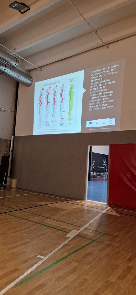 Prvo predavanje održala je Renata Sopek na kojoj se govorilo o važnosti tjelovježbi u svakoj prilici kako bi se smanjio stres i povećalo zdravlje na radnom mjestu, zatim je uslijedio aerobni trening kako bi se podigao puls polaznicima te adekvatno zagrijali tijelo.